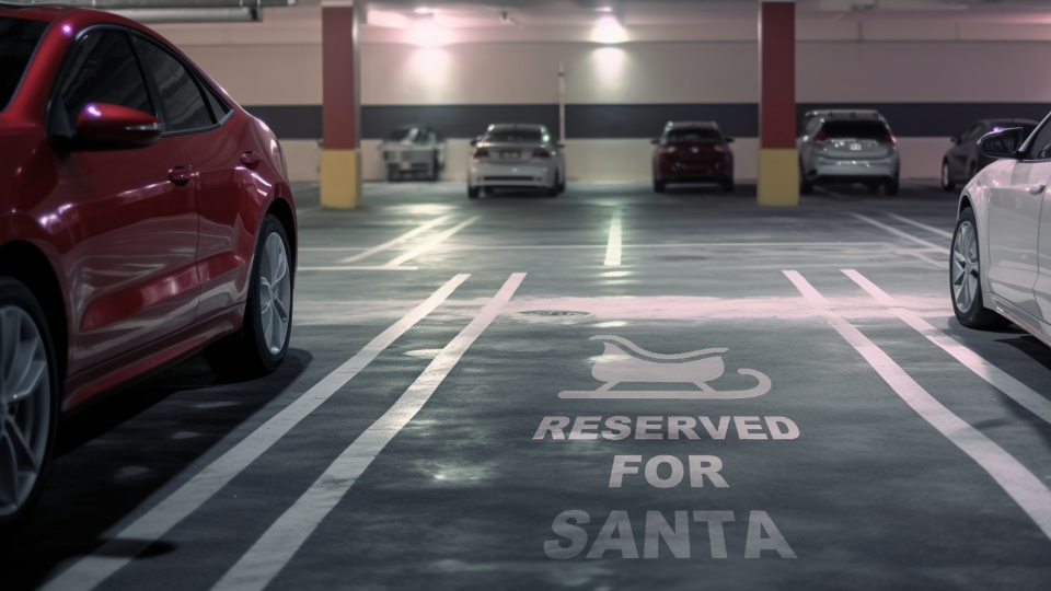 1- A parking spot designated for Santa in the mall's parking areas triggering curiosity among customers.
